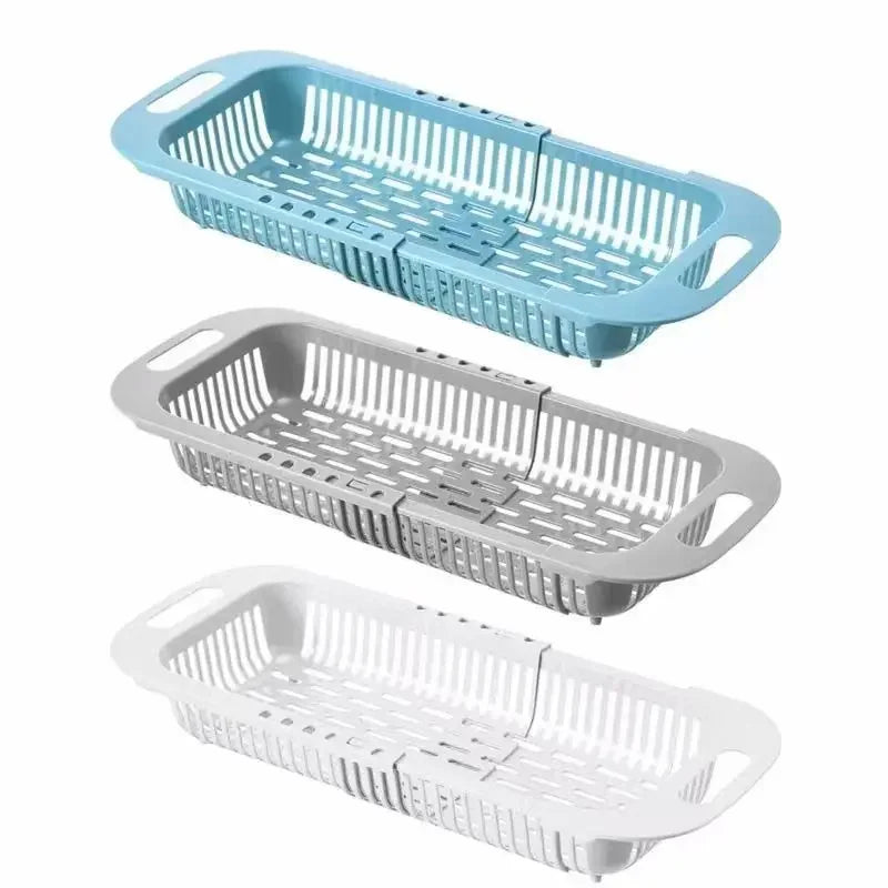 Transform your sink area with this clever telescopic storage rack that expands to fit your needs. Perfect for drying dishes, storing fruits, or organizing kitchen essentials right over your sink.