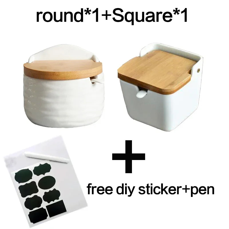 Elevate your cooking space with this beautiful ceramic spice jar set. Each jar features a wooden lid and sits perfectly on the included bamboo tray, combining functionality with elegant design.